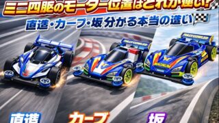 その他 ミニ四駆のモーター位置はどれが速い?直進・カーブ・坂で分かる本当の違い🏁 ミニ四駆のモーター位置(前・真ん中・後ろ)はどれが速い?直進・カーブ・坂(上り下り)ごとのメリット・デメリットを実体験ベースで分かりやすく解説します。 2026.01.01 その他ミニ四駆