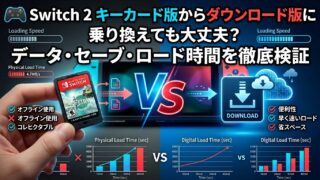 Switch2キーカード版からダウンロード版に乗り換えると再ダウンロードは不要?セーブデータは引き継げる?ロード時間は変わる?実機検証で全て解説します。