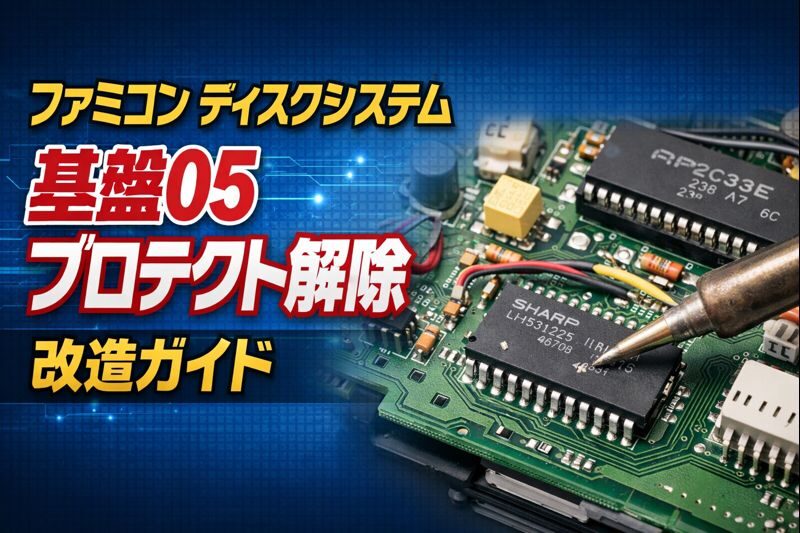 今回はディスクシステムの後期型(基盤05)の書き込みプロテクを解除する方法について解説します。