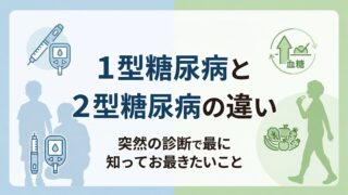1型糖尿病と2型糖尿病の違いを、突然診断された本人や親御さん向けにわかりやすく解説。原因、症状、治療、よくある誤解、不安を減らす考え方までやさしく整理しました。