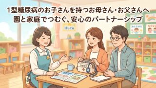 子どもが1型糖尿病と診断された親御さん向けに、幼稚園・保育園・学校へ伝える内容をわかりやすく解説。低血糖・高血糖の症状、CGMアラーム対応、給食、運動、遠足、面談の例文、FAQまでまとめた保存版ガイド。