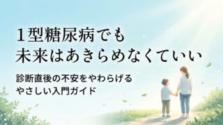 1型糖尿病と突然診断されて不安な方へ。原因、症状、治療、インスリン、学校や仕事、親のサポートまでわかりやすく解説。1型糖尿病でも自分らしい未来を築くための入門ガイド。