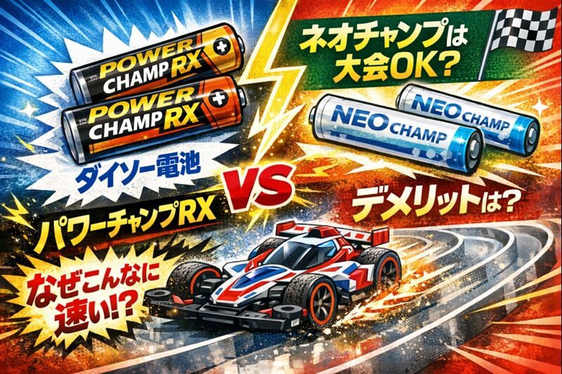 【ミニ四駆】ダイソー電池よりパワーチャンプRXが速い理由🔋⚡ ネオチャンプは大会で使える?デメリットは?親子初心者向けに解説🏁
