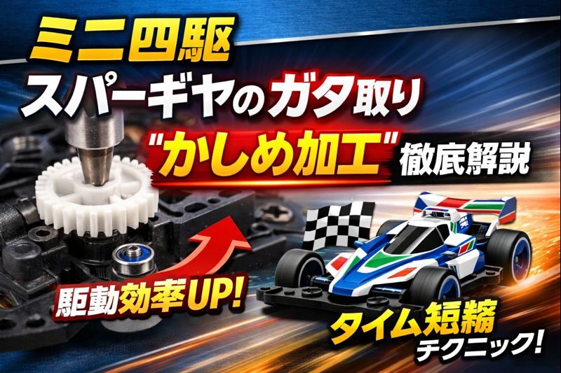 ミニ四駆において、少しでも速く、安定して走らせるためには、細かな精度や部品同士の噛み合わせを向上させることが重要です。今回は、上級者向けテクニックのひとつ、「スパーギヤのかしめ加工」をご紹介します。この加工を行うことで、駆動効率の向上やタイム短縮、走行中のブレや負荷を軽減することが可能になります。