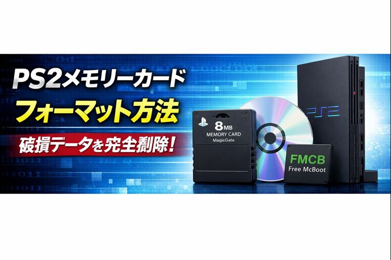 通常、メモリーカードは新規で購入してPS2に初めて入れたときにしかフォーマットできないのですが、今回紹介する方法を実施すればメモカの初期化(フォーマット)が可能になります!