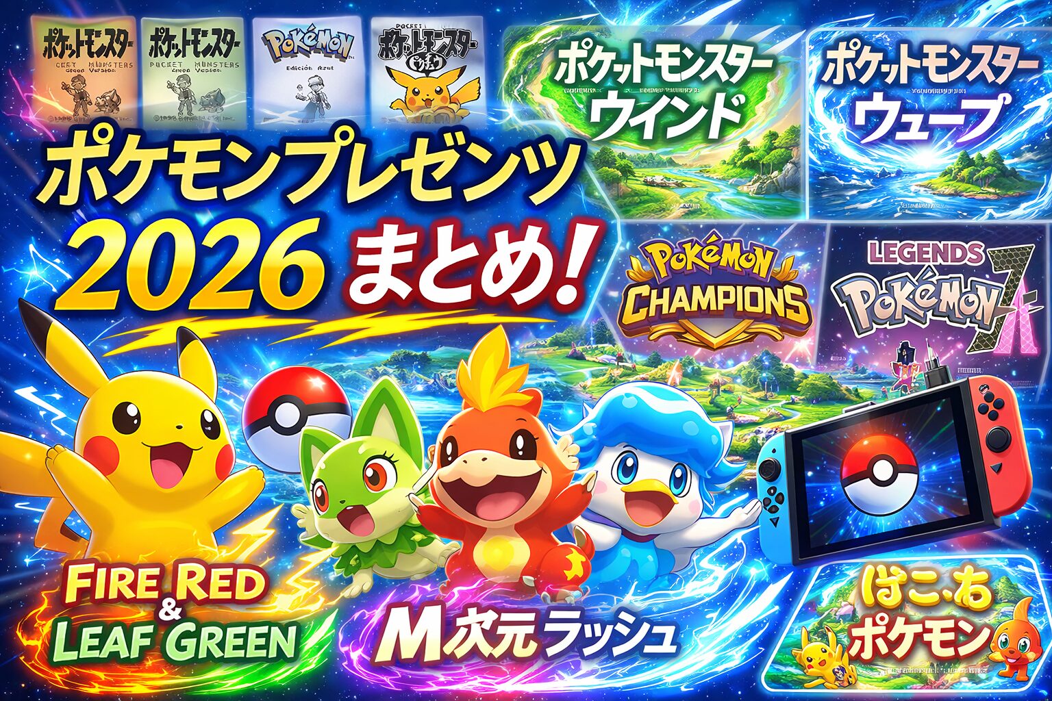 2026年2月27日に公開された「Pokémon Presents 2026.2.27」では、ポケモン30周年にふさわしい大型発表が一気に公開されました。完全新作『ポケットモンスター ウインド・ウェーブ』、Nintendo Switch版『ポケットモンスター ファイアレッド・リーフグリーン』、さらに『Pokémon Champions』や『Pokémon LEGENDS Z-A M次元ラッシュ』の新情報まで、今後のポケモン展開を左右する内容が詰まっていました。
