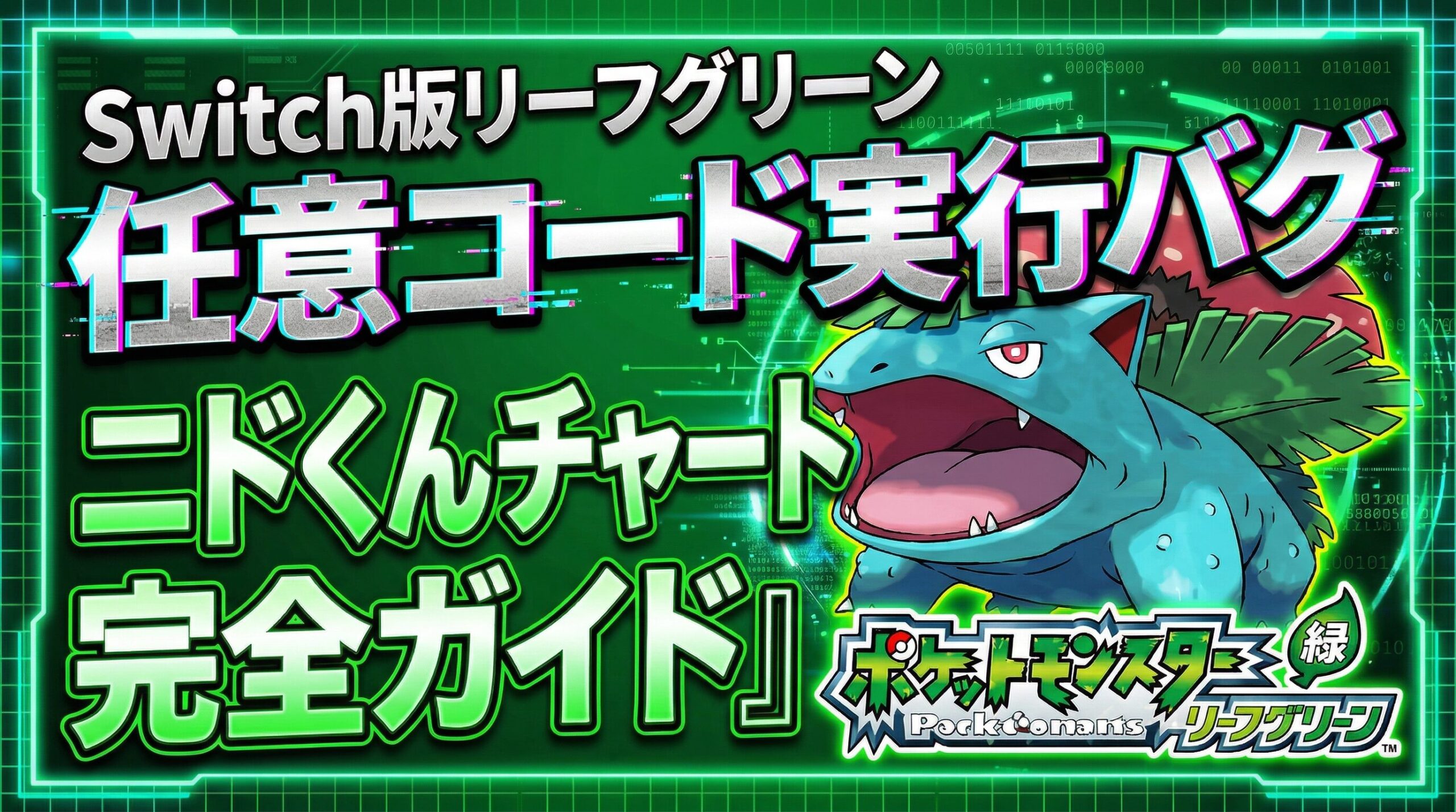今回のテーマは、Switch版『ポケモン リーフグリーン』で安定して任意コード実行バグへ到達する方法。動画内では、通信交換・理不尽な運要素・高度な乱数調整なしでも進めやすいルートとして、いわゆるニドくんチャートが丁寧に解説されていました😊