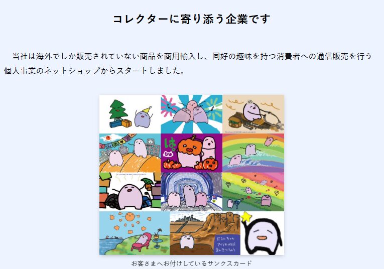 企業サイトでも「コレクター向けにニッチな商品を展開」と明言していて、