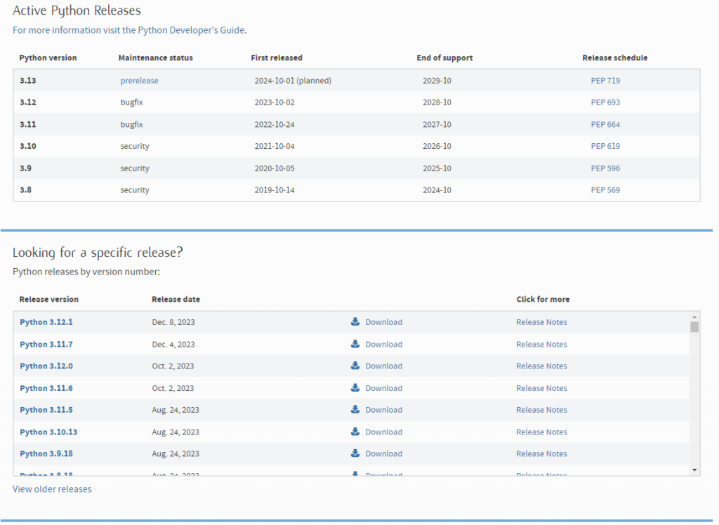 2-2.特定のバージョンが欲しい場合は、サイトを下へスクロールすると以下が現れるので、お好きなバージョンを選択してダウンロードすればよい。