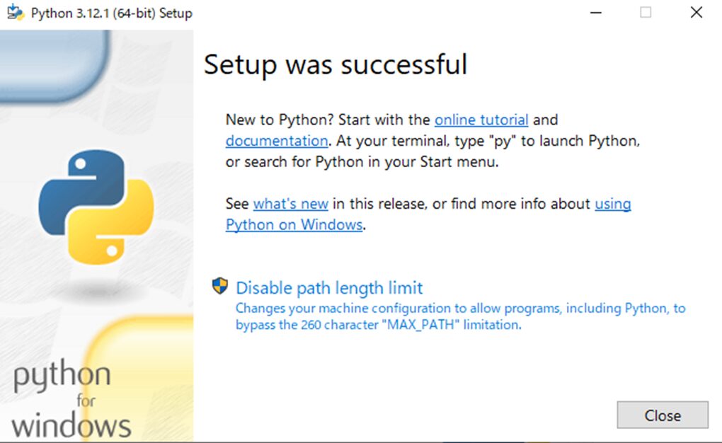5.インストールが開始され、「Setup was successful」と表示されたら「Close」ボタンをクリックします。