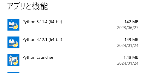 以下のフォルダを削除します。(特定のPythonを削除する場合)