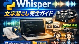Python×Whisperで高精度な文字起こしをローカル実行!Windows/Mac/Linuxの導入手順、ffmpeg設定、GPU(CUDA)高速化、字幕SRT/VTT出力、フォルダ一括処理、faster-whisper/WhisperXによる高速化・話者分離まで網羅した完全ガイド。