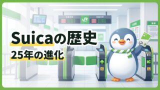 Suicaはいつ始まり、どう進化したのか。JR東日本公式動画「Penguin Years ごいっしょに」をもとに、Suicaの歴史、電子マネー化、モバイルSuica、全国相互利用、Suicaのペンギン卒業までをわかりやすく解説します。