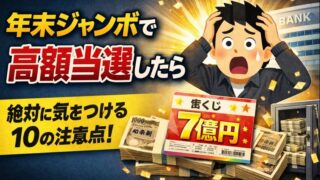 年末ジャンボで高額当選した場合に本当に気をつけるべき注意点を体験談ベースで解説。誰にも言わない理由、税金、銀行対応、投資の落とし穴まで網羅。
