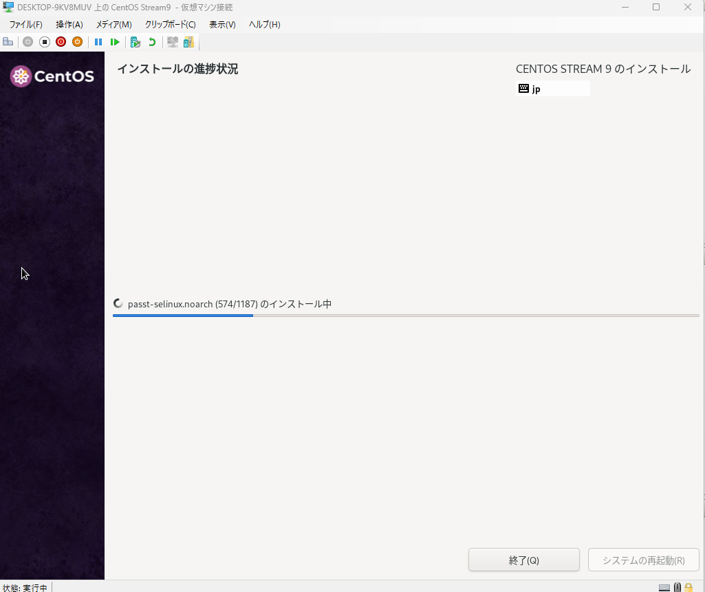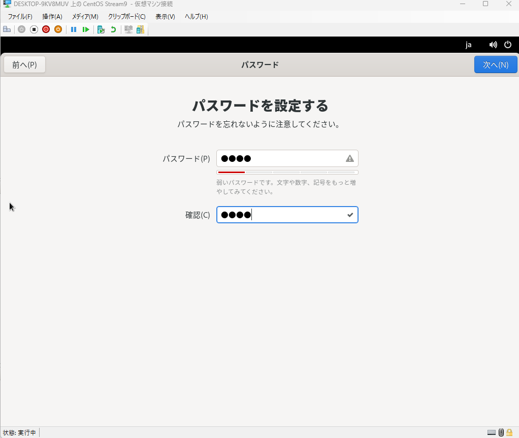 - root パスワード / ユーザー作成 → インストール開始 → 完了後再起動。