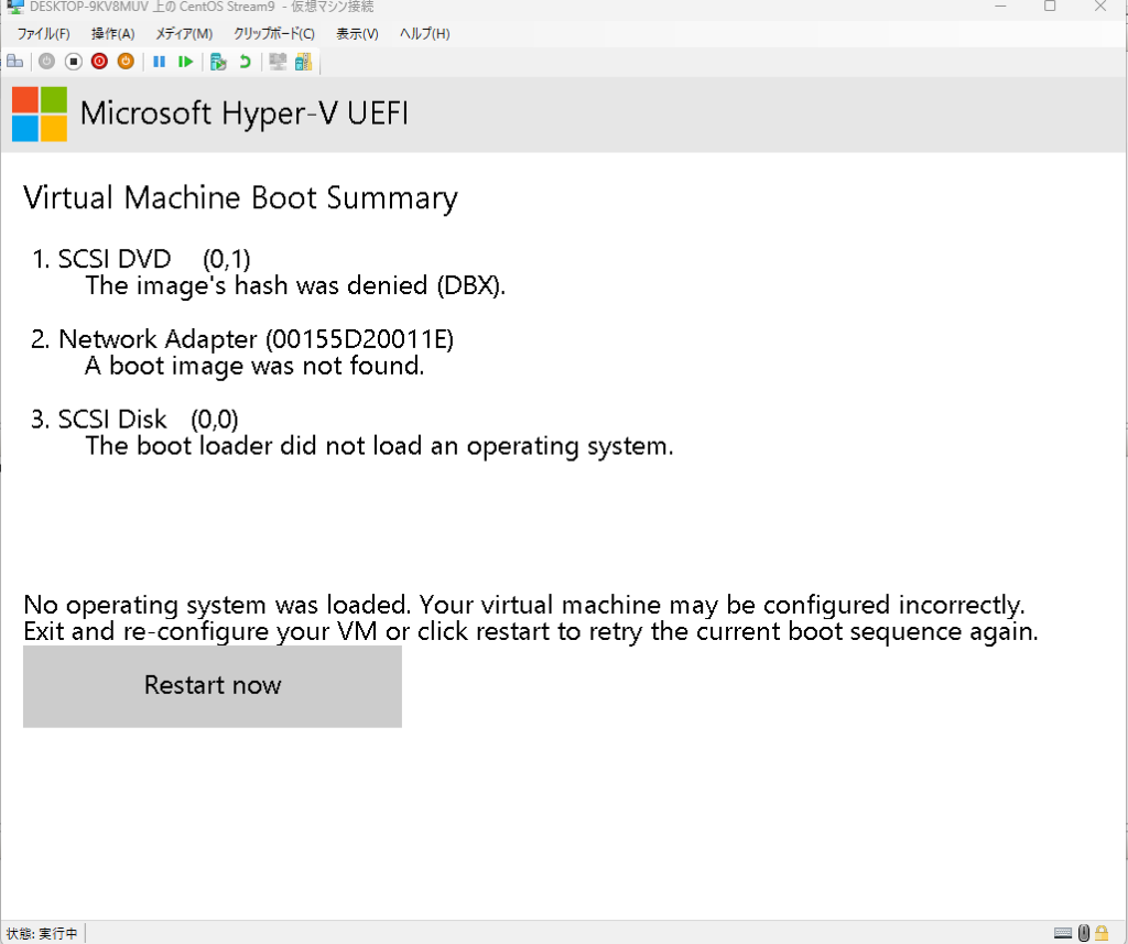 ※Secure BootをMicrosoft UEFI Certificate Authority未設定の場合以下のエラーが出る。