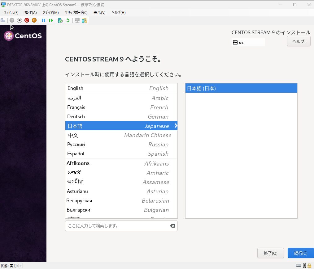 - VM を起動 → 画面で Install CentOS Stream 9 を選択。
