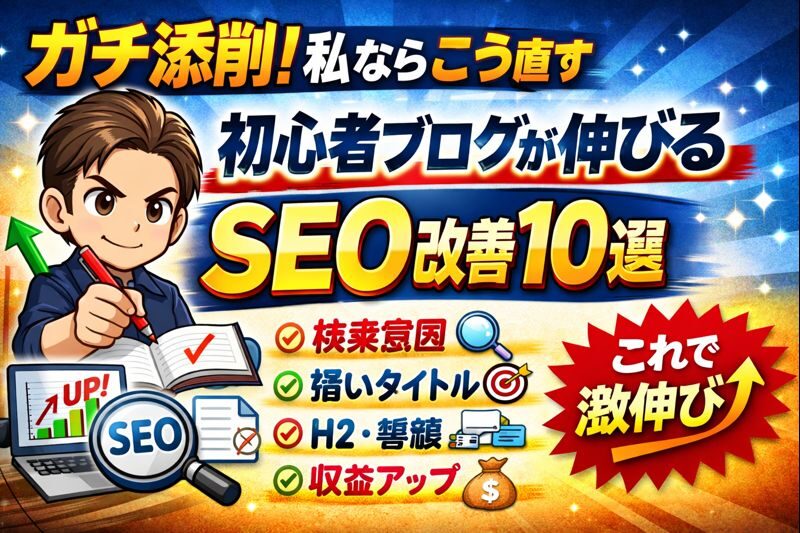 【ガチ添削】初心者ブログが伸びない原因は“設計”だった!私ならこう直すSEO改善10選🛠️✨