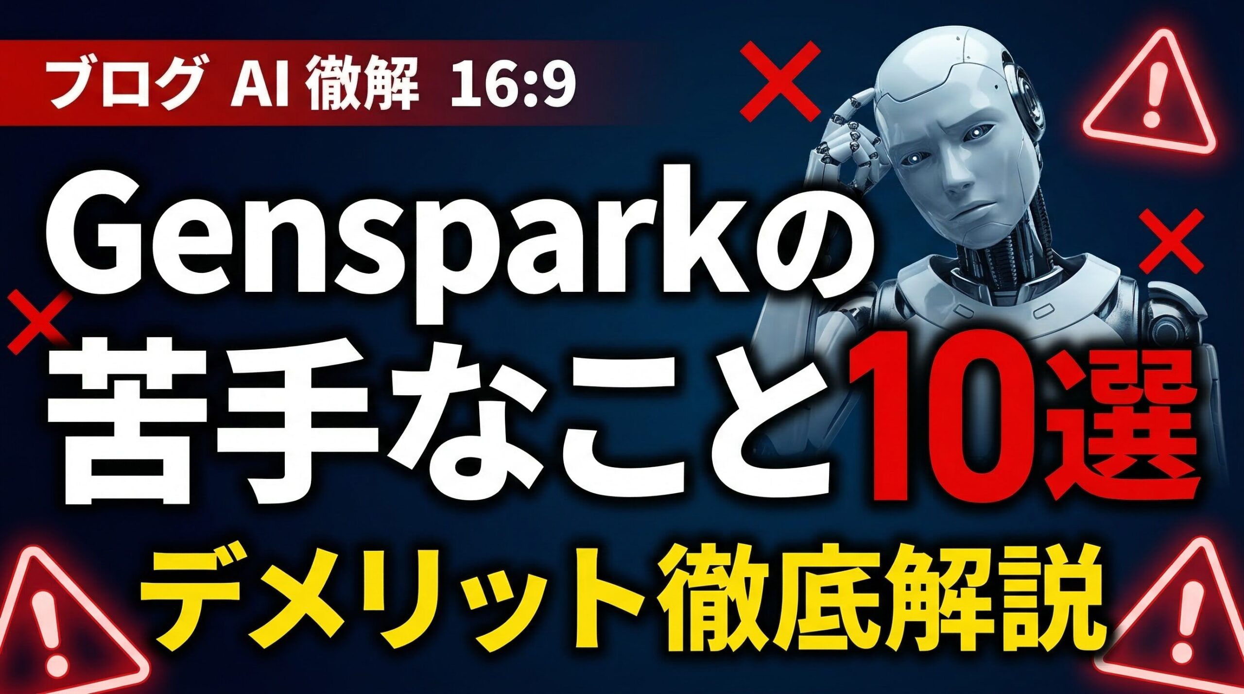 この記事では、実際のレビューデータや利用者の声をもとに、Gensparkが苦手なこと10選を徹底解説します。最後まで読めば、Gensparkを「知っているようで知らなかった」あなたが、AIツールの使い分けマスターになれるはずです。💪