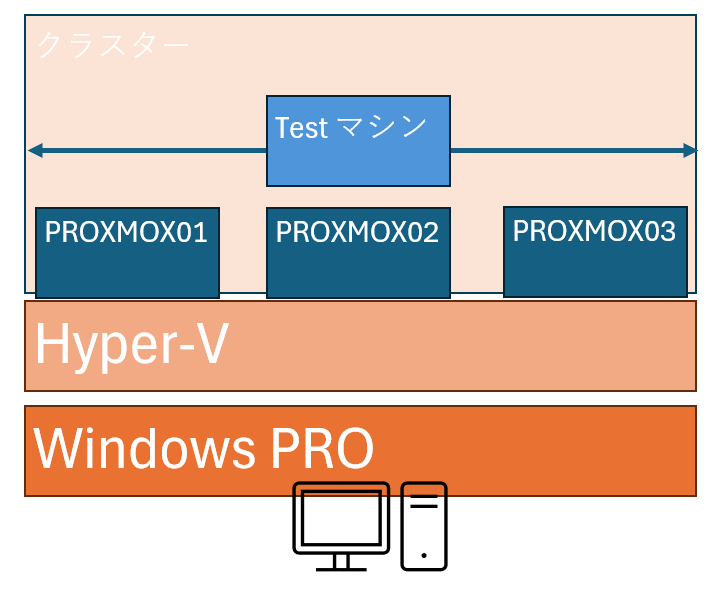 ※後ほど記載しますが、Hyper-V上で構築しますので、ホスト側のリソースが許す限りのProxmoxサーバーを用意してもOKです。