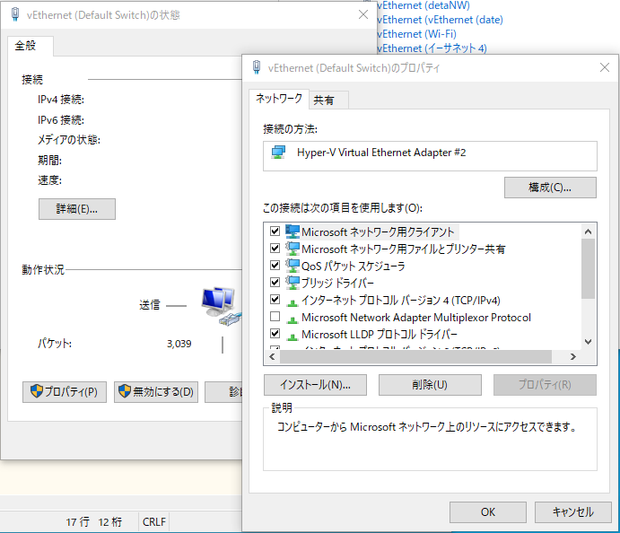 vEthernet(Default Switch)を左クリックして開きます。