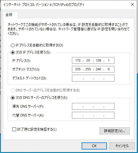 次に、vEthernet(Default Switch)設定します。※他は設定しません。