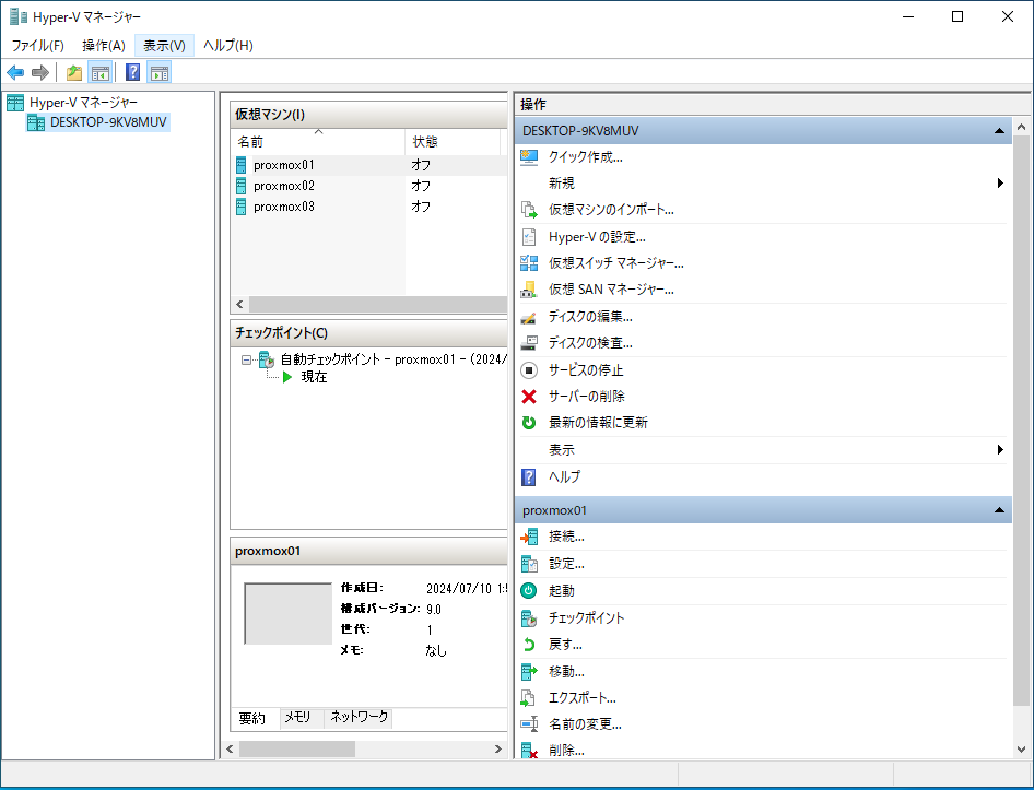 ハイパーバイザー(Hyper-V)上に、ハイパーバイザー(Proxmox)を載せる、普通では絶対にやらない構成で作ります。