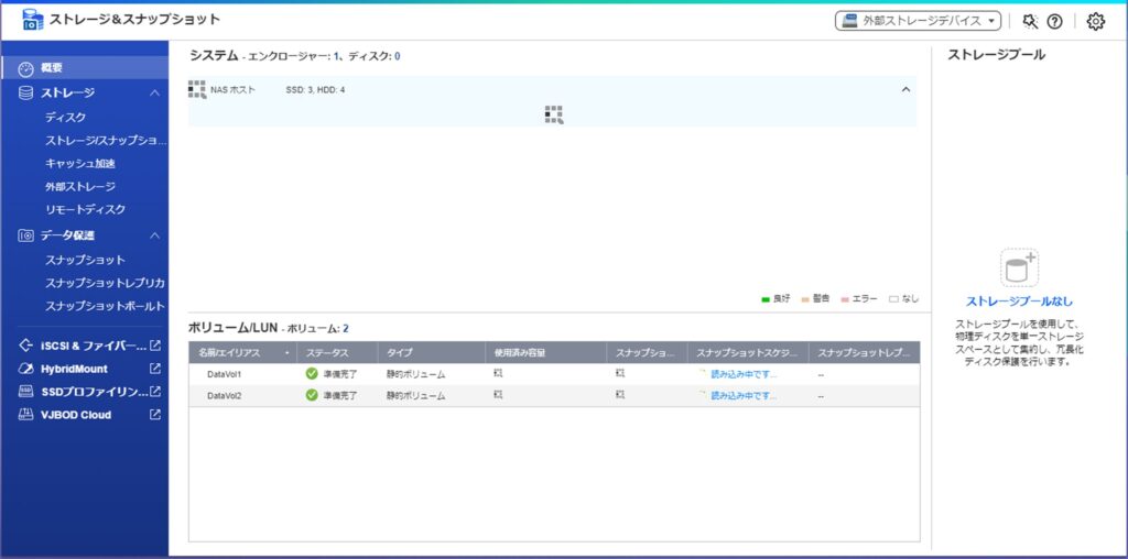また、仮想マシンから参照するデーター領域の保存先として、QNAPサーバー上にiSCSIでデータ領域を作成して参照できるようにします。