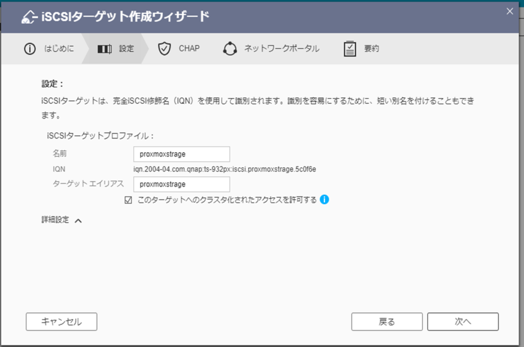 iSCSIターゲット作成