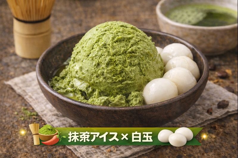 2️⃣ 抹茶アイス × 白玉 🍵