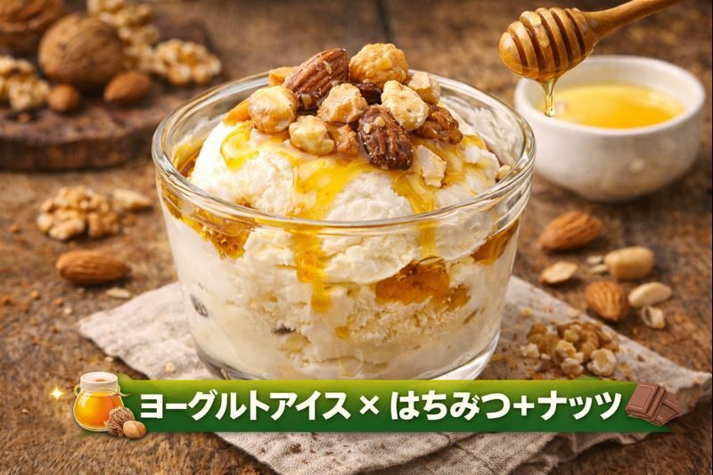 8️⃣ ヨーグルトアイス × はちみつ+ナッツ 🍯🥜