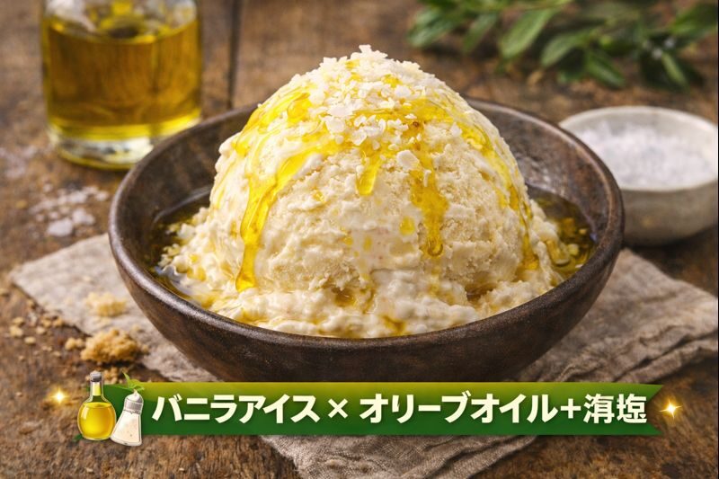 6️⃣ バニラアイス × オリーブオイル+海塩 🫒🧂