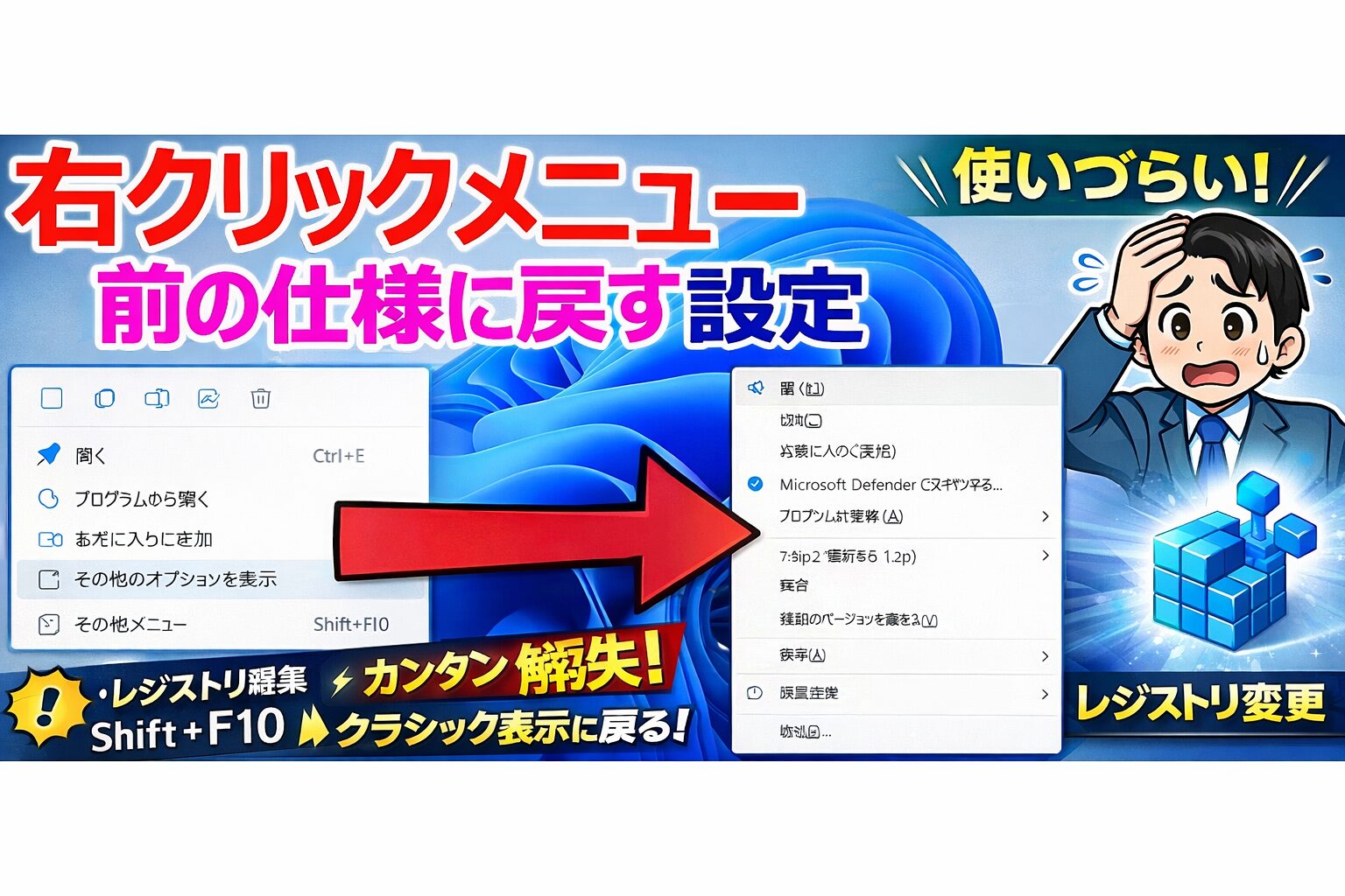 この記事では、Windows 11の右クリックを前の表示に近づける方法を、初心者にもわかりやすく解説します。