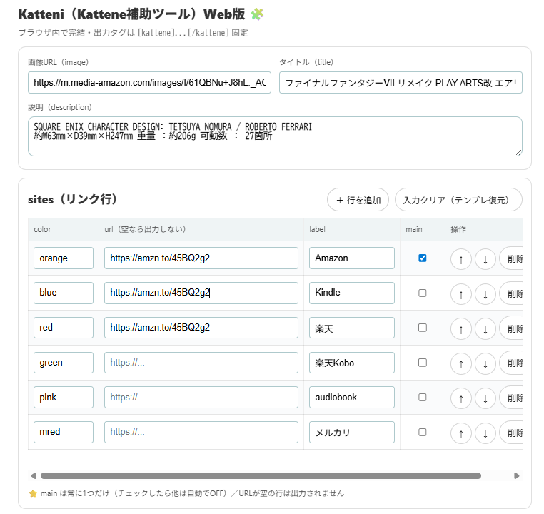 そこで役立つのが、Kattene入力をラクにする補助ツール Katteni Maker です🧰✨