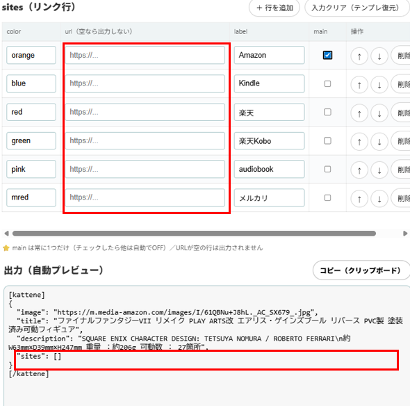 テンプレ行を残しておいても、URLが空なら出力されません📌
