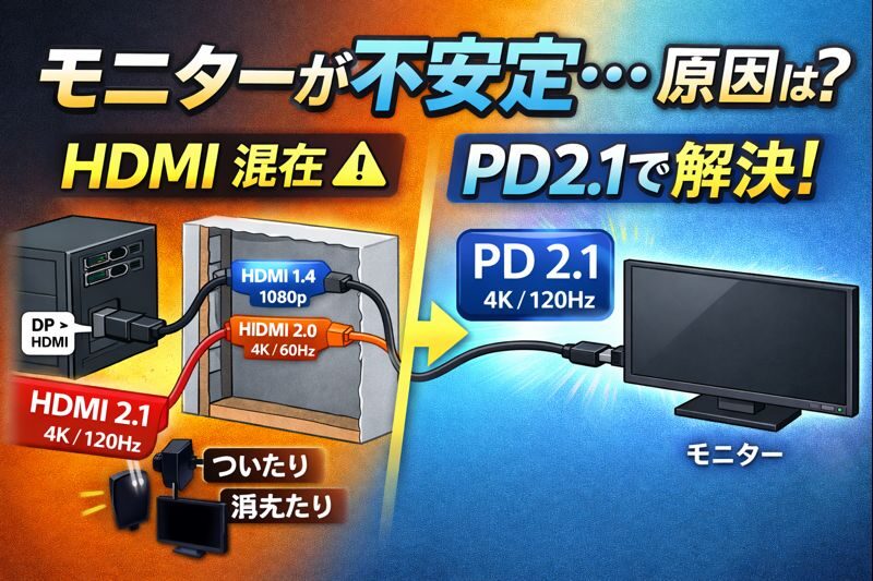 ❓ なぜ DisplayPort(PD2.1)直結だと安定するの?💡