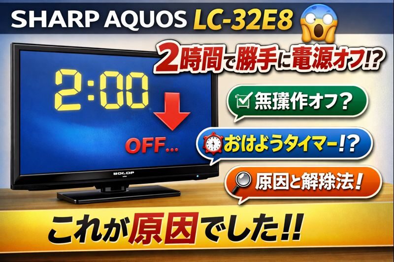 結論から言うと、“2時間ぴったり”で切れる系は、ほぼタイマー・省エネ設定が原因です。特に盲点になりやすいのが **「おはようタイマー」**でした。