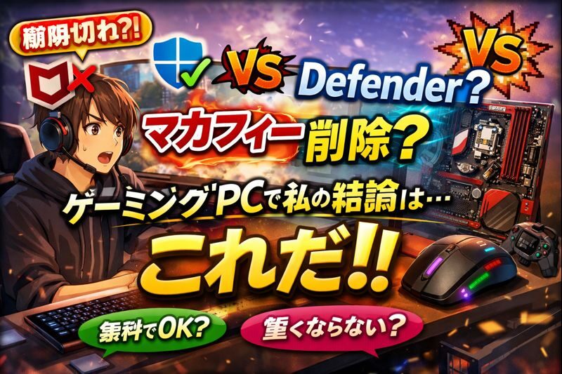 その点、Defenderは Windowsと統合されていてクセが少ない ので、ゲーミング用途でも扱いやすいと感じました。