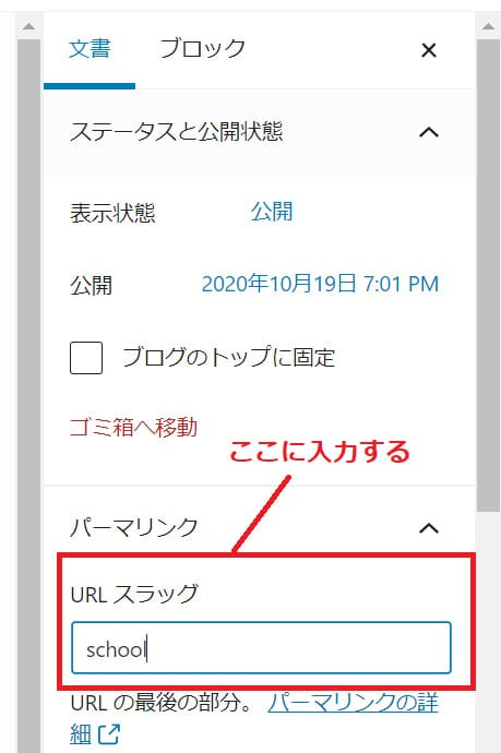 - おすすめ:「投稿名」(日本語スラッグより英数が理想)